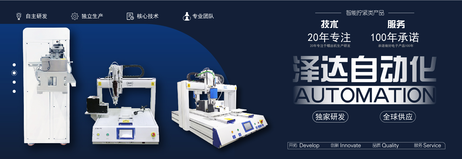 深圳市澤達自動化設備有限公司成立于2005年,是研發、生產螺絲機的國家高新技術企業。公司員工近200人,在蘇州,合肥,重慶,寧波,青島設有分公司以及在韓國,越南,德國等設有代表處,服務世界30多個國家和地區.澤達主要產品有:螺絲供料機,螺絲點數機,標簽機,自動鎖螺絲機,手持式自動鎖螺絲機,智能電批等。螺絲機,標簽機是公司的核心產品,多年占領中國高達80%的市場份額,也為中國的螺絲機行業做出了突出貢獻。